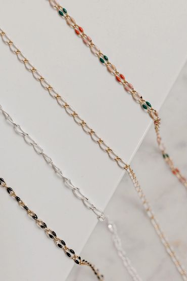 At Poppy & Violet, we believe that jewelry is not just a fashion accessory, but an expression of your personality and style. With over 25 chains to choose from and 50 charms, you are bound to find something that speaks to you and that you love. Here are some examples of some of the chains we have. We are always updating so make sure to stay tuned!